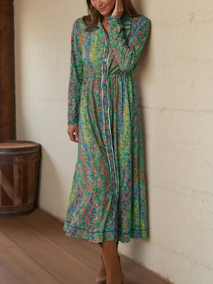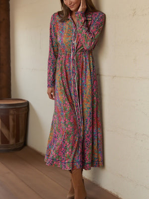 Boho Rainbow Floral Print Shirt Stretch Dress