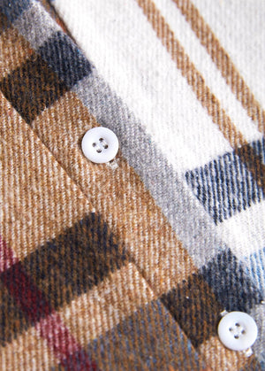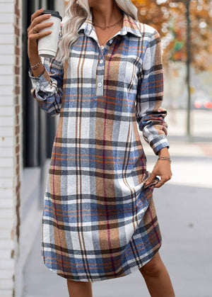 Multi Color Button Plaid A Line Long Sleeve Dress