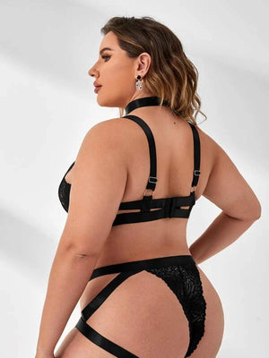 Plus 3pack O-ring Linked Underwire Thong Lingerie Set