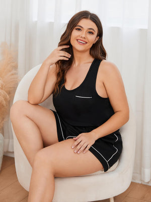 Plus Contrast Binding Sleep Tank Top & Sleep Shorts