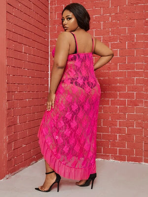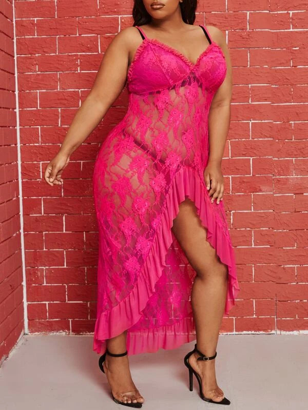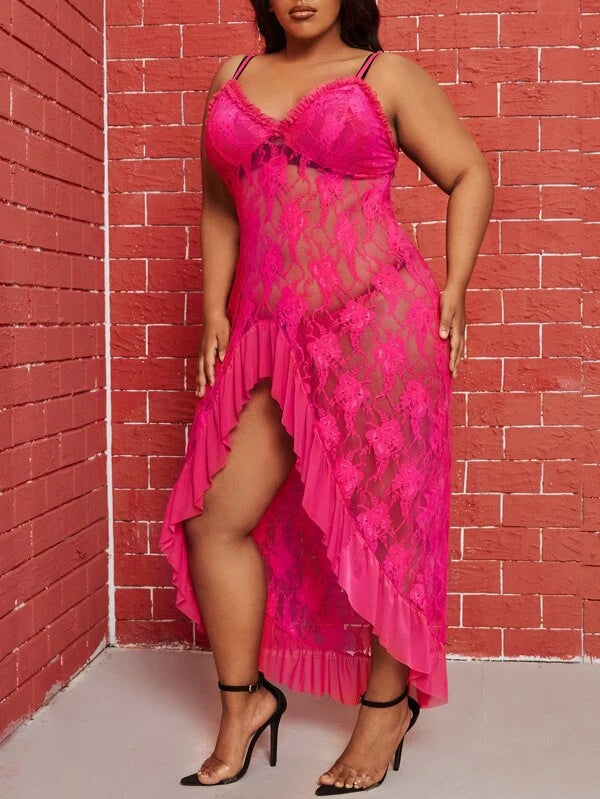 Plus Lace Frill Trim Slips With Thong