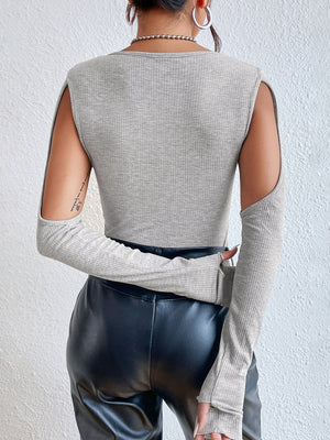 Home Ribbed Hollow Out Thumbhole Bodysuit