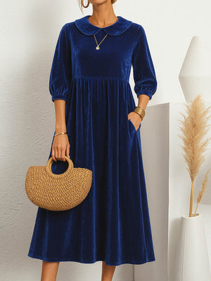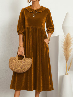 Women's Solid Color Peter Pan Collar Short Sleeve Velvet Casual A-Line Dress