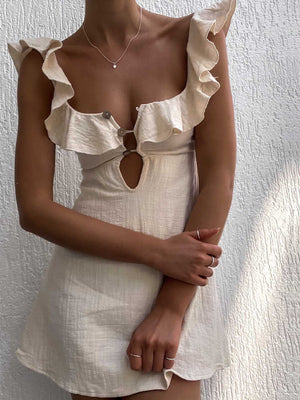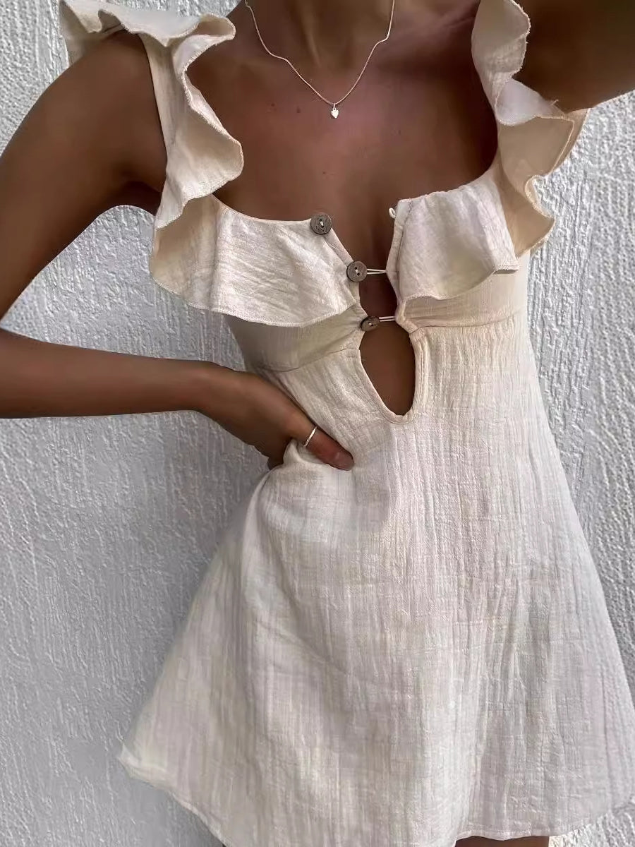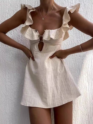 Women's Cotton And Linen Sexy Ruffle Suspender Miniskirt Dress