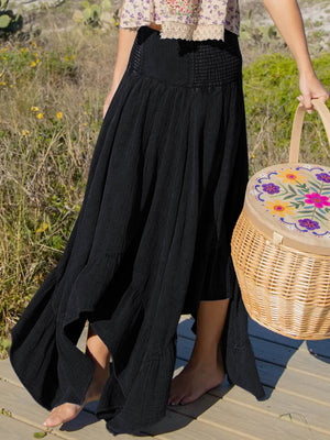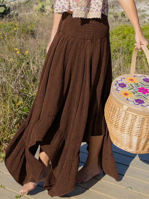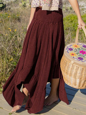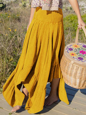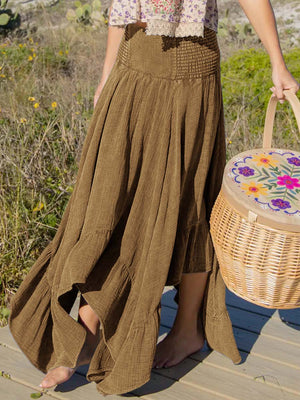 Women's Solid Color Elastic Waist Casual Cotton and Linen Skirt Off-the-Shoulder Dress Two-Way Dress