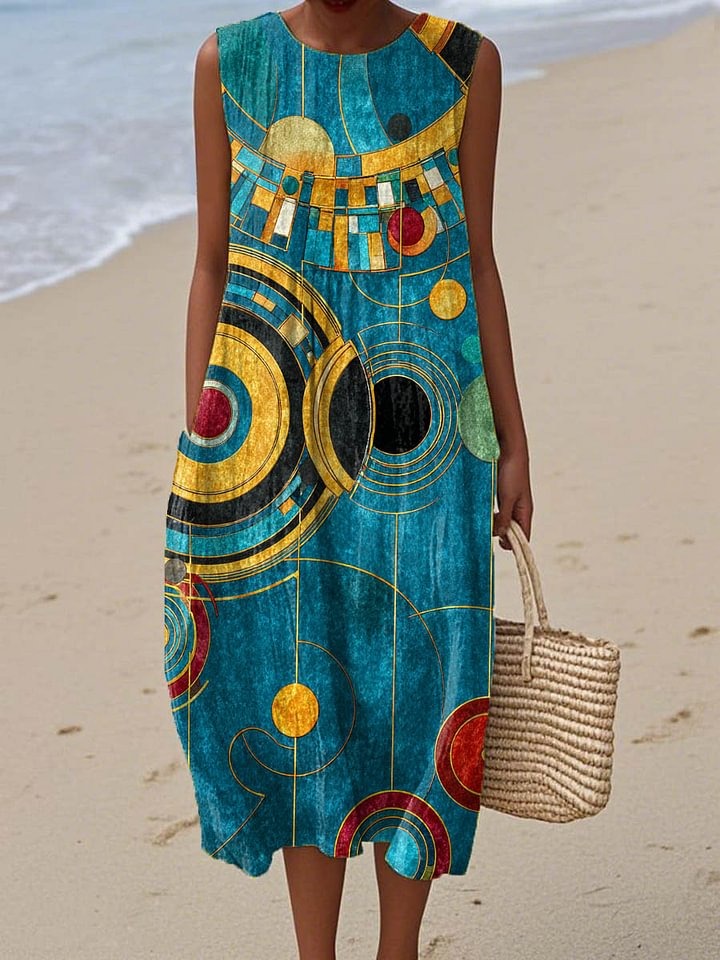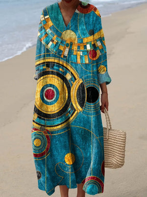 Women's Abstract Geometric Pattern Art Print Casual 100% Cotton Wide Leg Jumpsuit