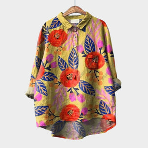 Chemisier imprimé vintage pour femme, printemps-automne, en lin et coton, manches longues, boutonné, avec poches