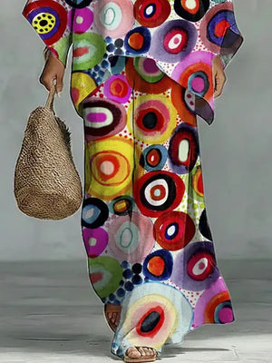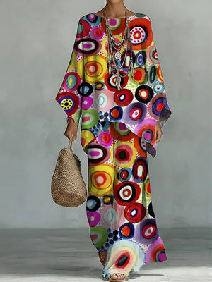 Women's Abstract Art Comfortable Loose Cotton Linen Wide-leg Pants Two-piece Set