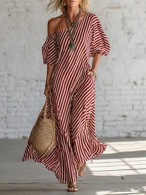 Elegant And Classic Striped Off-shoulder Maxi Dress
