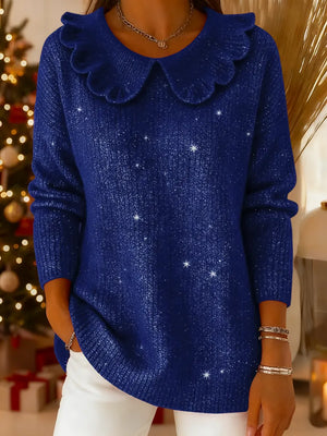 Women's Solid Color Peter Pan Collar Long-sleeved Casual Loose Knit Sweater