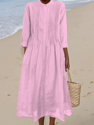 Women's Pleated Cotton and Ramie Long-sleeved Dress